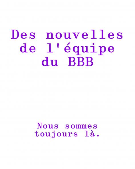 Des nouvelles de l'équipe du BBB : nous sommes toujours là.